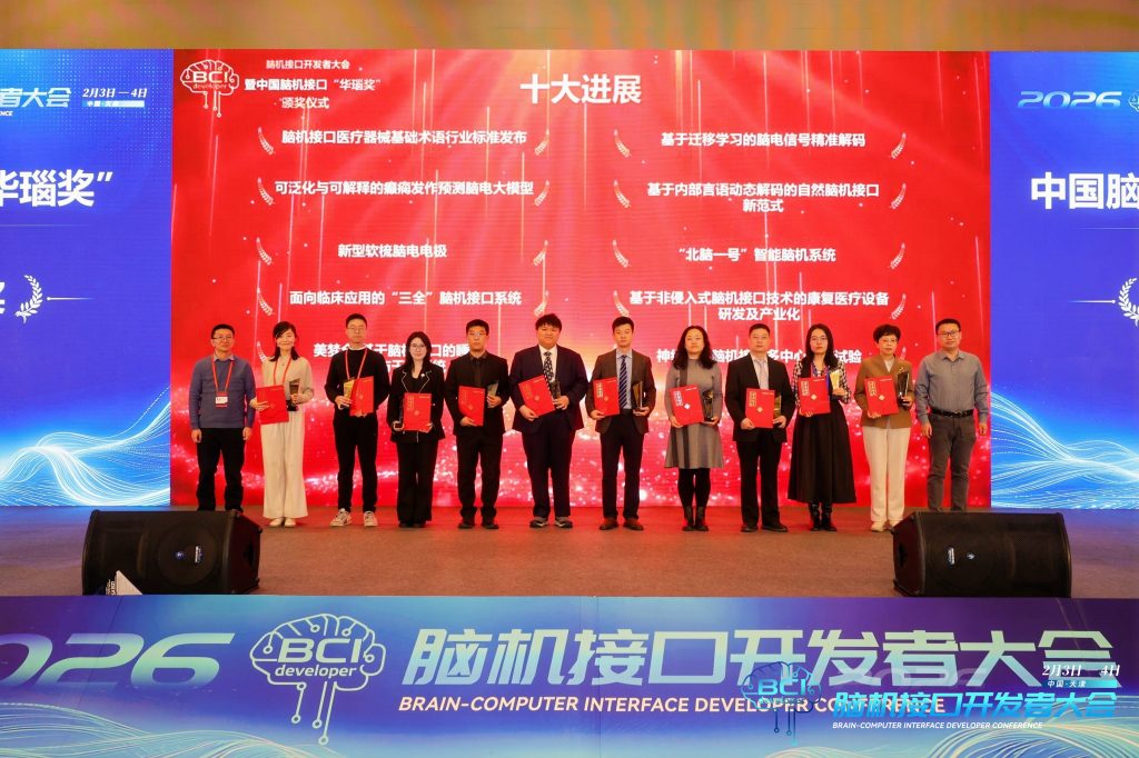 2月3日,全国首届脑机接口开发者大会在天津召开。当晚,华瑙—2025年度中国脑机接口十大进展正式揭晓。中国脑-机接口“华瑙奖”评奖委员会在广泛联系学术组织征集的基础上,经社会评选投票,专家评审等环节,隆重发布“华瑙—2025年度中国脑机接口十大进展”。这些科技成果聚焦标准体系、信息传输、临床应用等重点领域,在理论、方法、技术等方面均具有突出的创新性。