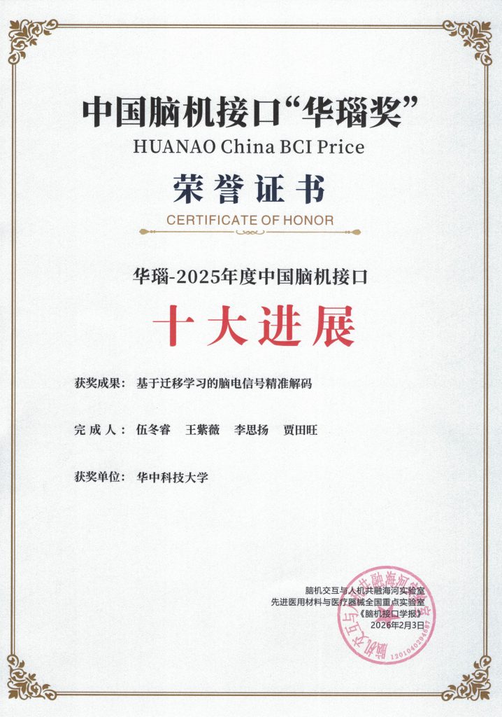 实验室成果入选华瑙-2025中国脑机接口十大进展