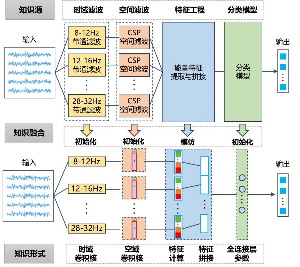 本节把知识融入前述介绍的纯数据驱动无创脑机接口解码算法,进一步提升其解码准确度。