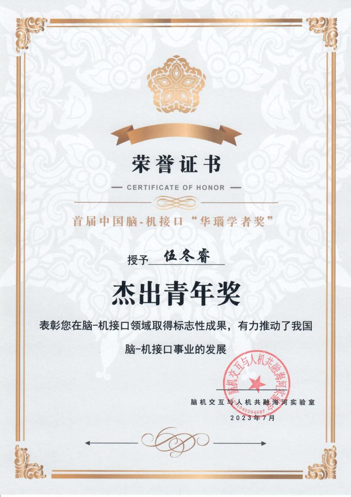 伍冬睿教授获2023华瑙学者杰出青年奖